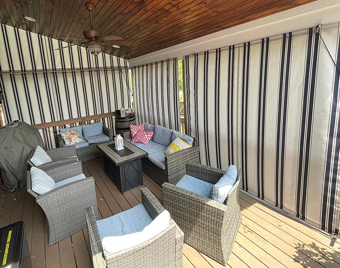 Country Canvas Awnings stands out for its dedication to crafting high-quality, custom curtains and shades for porches, covered Patios, existing awnings, and windows  that not only offer shade and privacy but also add an element of aesthetic appeal to any space. We provide solutions that merge functionality with finesse, ensuring that each product not only meets the practical needs of our clients but also enhances the overall look and feel of their homes or businesses.